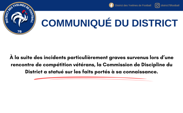 À la suite des incidents particulièrement graves survenus lors d’une rencontre de compétition vétérans, la Commission de Discipline du District a statué sur les faits portés à sa connaissance.